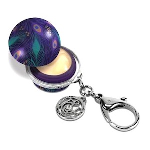 As I mentioned above, I coat all uncovered parts of my body with sunblock before I go outside, but I still need to protect my lips. When I first came across these lip balms from Twist & Pout, I thought they were a bit tacky, but then I warmed to the idea. The lip balm “sphere” clips to my keychain, so I can always find it, and the balm itself contains SPF and a lemon-honey fragrance. I own this peacock-feather container, one of many fun designs.