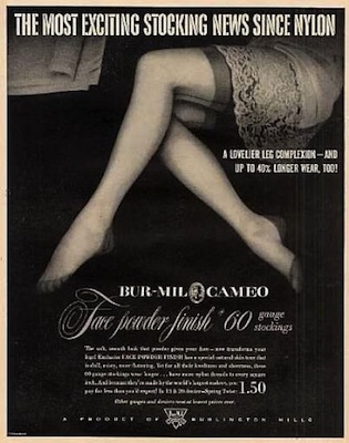 Images: photos by Tinsel Creation; 1951 stockings advertisement via Vintage Ad Browser.