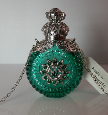 The eBay seller ludvamgift usually has a few glass bottle-necklaces up for sale. They’re fabulously ornate, with crown-like caps, and they’re priced around $19.99. I think you’d have to wear a big and bold Amouage fragrance in one of these.