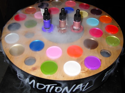 Now, however, I need to back up a bit, because the real story is the way you’re supposed to approach Emotional Brilliance and choose your colors. For the preview, I was brought into a curtained, candlelit back space to view the spinning “color wheel.” I was encouraged to select three colors that appealed most to me on an instinctive—yes, and emotional—level, rather than viewing them as makeup shades. I tried to go with my feelings, and I put my finger on a warm rose, a soft taupe, and a saturated purple.