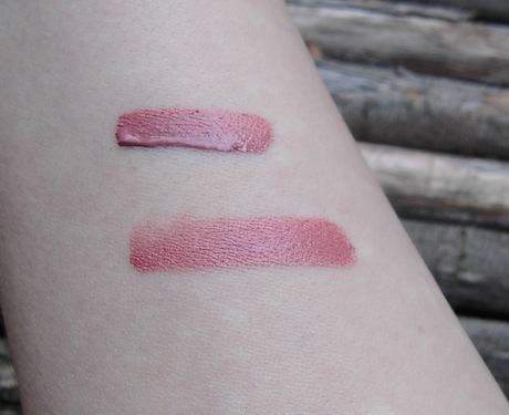 I took a photo of Perspective on my arm: the top swatch is freshly applied, and the bottom swatch has been blended with one touch of my finger. As you can see, the color looks more gleam-y right out of the bottle and then appears slightly more matte when blended. On my mouth, it’s a very natural-looking nude with a subtle gold sheen. I’ve been topping it with a pink gloss when I want a cooler-toned effect.