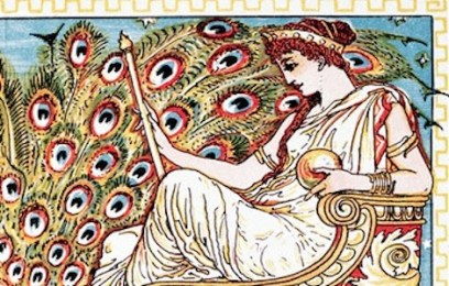 Images: Walter Crane, detail of The Peacock’s Complaint (1887), via Corbis; product photograph by Tinsel Creation.
