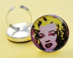 Of course, despite the best efforts of the Warhol Foundation, there’s also a certain amount of non-licensed Warhol trinketry out there. Not that I’m condoning copyright infringement or what have you, but this Marilyn Monroe ring is pretty fun. ($12 from on seller “melaniemross” on Etsy)