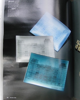 I’m especially smitten with John Derian‘s “handcrafted découpage tray featuring a rendition of the Bergdorf Goodman building.” It shows the architects’ original design for the store’s Fifth Avenue façade, courtesy of Columbia University’s Avery Architectural & Fine Arts Library.