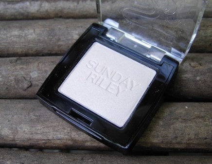 Moon Dust is a single eyeshadow in a white shade with very fine shimmer. It actually appears almost matte white in its compact, which is Sunday Riley’s usual sleek black-and-clear design.