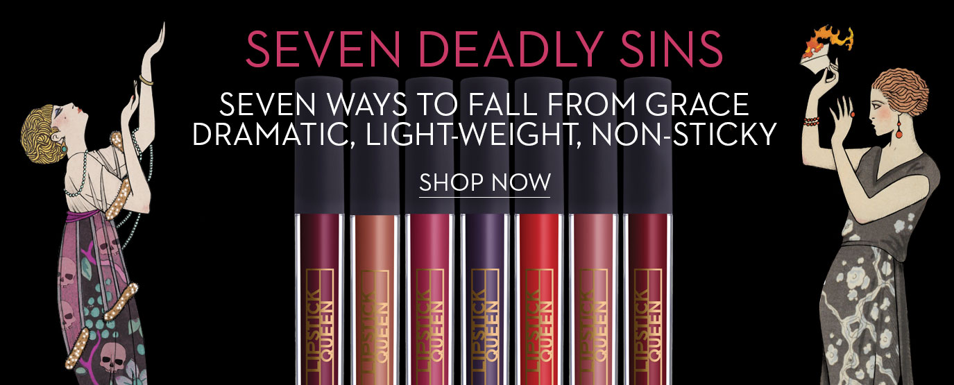 Lipstick Queen has just launched a collection of seven lip glosses named for the Seven Deadly Sins (Lust, Anger, Avarice, et al.). I’m old enough to remember Poppy King’s original Seven Deadly Sins, a series of matte lipsticks in shades that were very daring indeed for the mid-1990s. I tried a few of them at Barneys (the Short Hills location! long since gone!) back in the day.